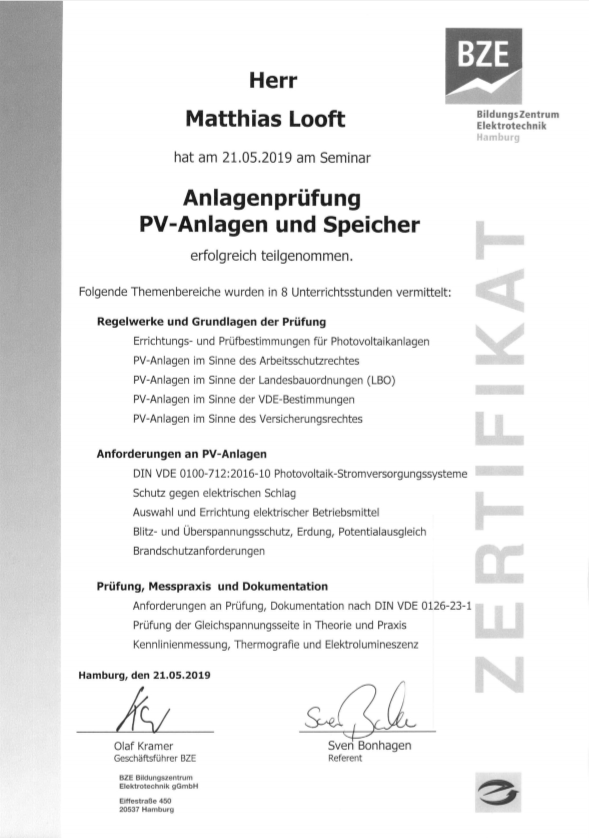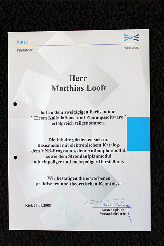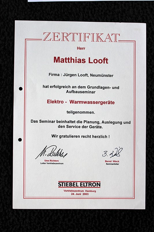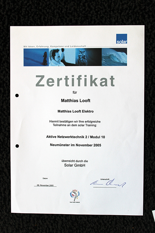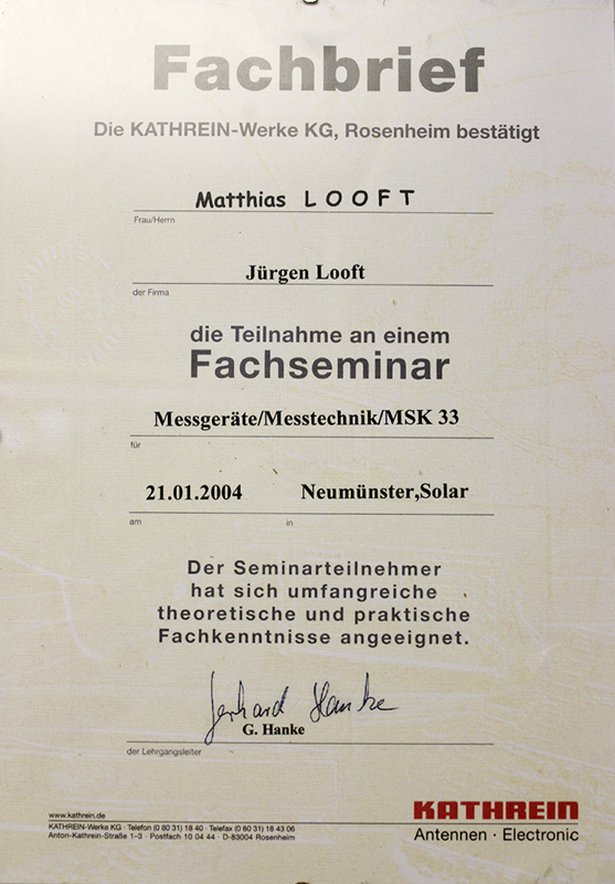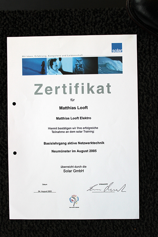 Die Fa. Jürgen Looft - Elektroinstallationen wurde am 3. Januar 1975 gegründet.